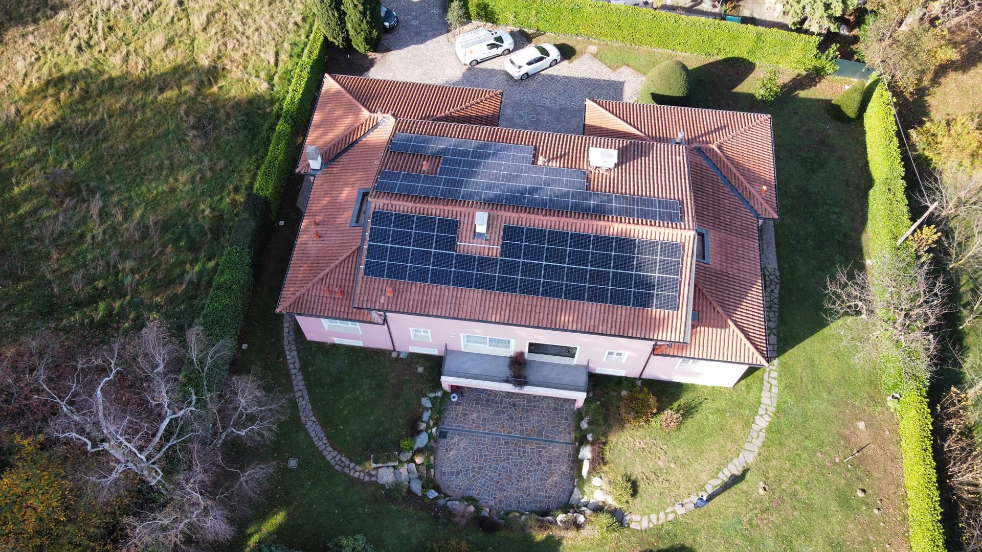 Realizzati a Valmorea 2 impianti fotovoltaici a servizio di due gruppi familiari per un totale di 54 moduli Trina a 450 Wp per complessivi 24,3 kWp.